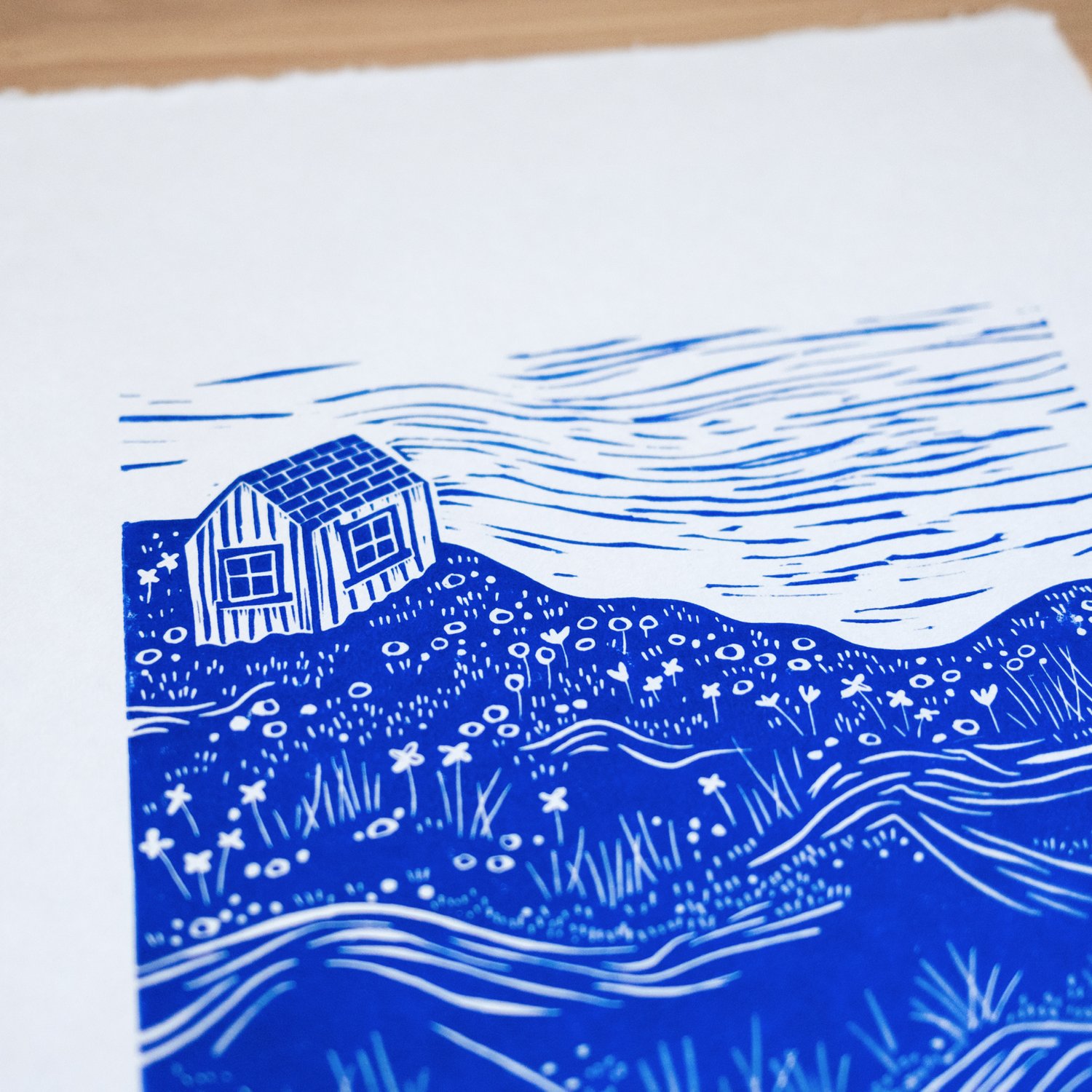 Individually hand stamped from a carving. The beauty of hand printing means each print will be slightly unique. E.g. small variations in ink texture and application.